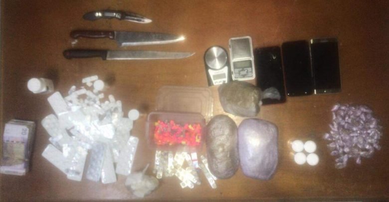 وجرى توقيف المشتبه فيهما على مستوى حي مسنانة بمدينة طنجة، حيث أسفرت عملية التفتيش المنجزة بمنزل أحد الموقوفين عن حجز كيلوغرامين من مخدر الشيرا و1082 قرص مهلوس، علاوة على 42 غرام من مخدر الكوكايين وأسلحة بيضاء، وكذا ميزانين إلكترونيين وثلاثة هواتف نقالة.