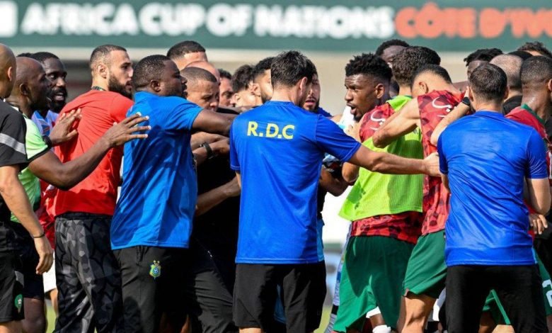 وانطلقت المناوشات عندما وجَّه اللاعب الكونغولي شانسيل مبيمبا عبارات مسيئة للناخب الوطني وليد الركراكي؛ ما أشعل الموقف بين لاعبي الطرفين وأيضاً بين الطاقم التقني للمنتخبين والإداريين، ليتواصل الشجار حتى غرف خلع الملابس بين عدد من اللاعبين، ليسارع فوزي لقجع، رئيس الجامعة الملكية المغربية، إلى تهدئة الأوضاع واحتواء الموقف.
