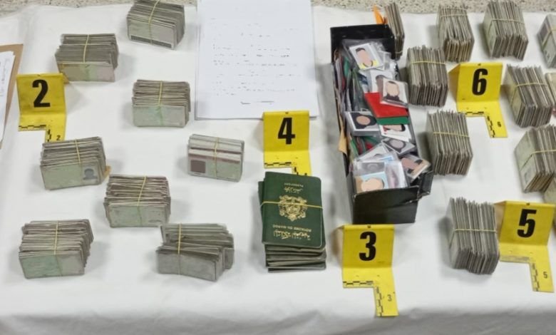 وقد مكنت عملية التفتيش المنجزة بمنزل المشتبه فيه عن العثور بحوزته على 942 وثيقة تعريفية وثمانية جوازات سفر في اسم الغير، علاوة على مجموعة من الصور الفوتوغرافية ونسخ من وثائق إدارية.
