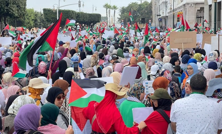 وشهدت العاصمة الرباط، يوم الأحد 6 أبريل 2025، مسيرة حاشدة دعت إليها الجبهة المغربية لدعم فلسطين ومناهضة التطبيع، احتجاجاً على استمرار حرب الإبادة الجماعية في غزة، وللمطالبة بإنهاء اتفاق التطبيع بين المغرب وإسرائيل.