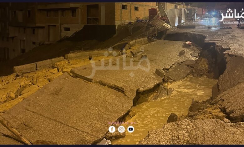 انهيار أرضي يبتلع جزءا من طريق عمومي قرب ورش بناء مجمع سكني بطنجة