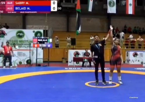فازت المصارعة المغربية، ملاك صبري، الجمعة، بالميدالية الذهبية في البطولة العربية للمصارعة المقامة في الأردن بعد انسحاب منافستها الجزائرية ميليسا بلعيد.