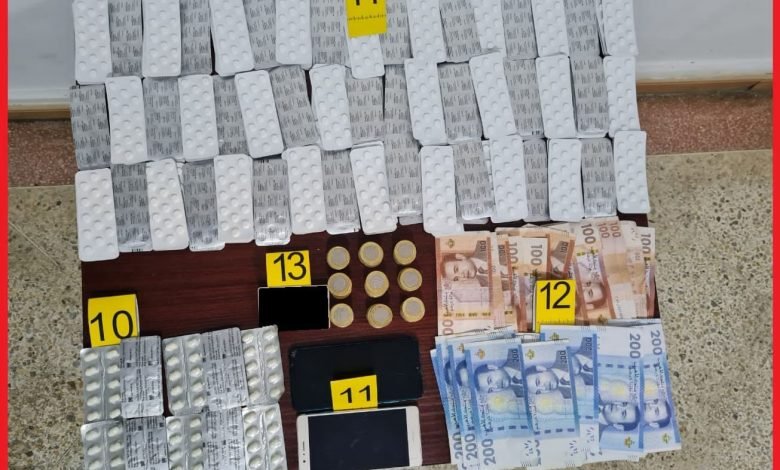 وذكر مصدر أمني أنه جرى توقيف المشتبه فيهما على مستوى مدينة بني أنصار، وهما في حالة تلبس بحيازة وترويج كمية من الأقراص المهلوسة، حيث أسفرت عملية الضبط والتفتيش عن العثور بحوزتهما على 1840 قرص طبي مخدر من أنواع مختلفة، فضلا عن مبلغ مالي يشتبه في كونه من عائدات هذا النشاط الإجرامي.