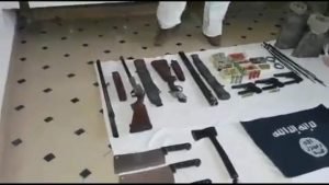 وبالموازاة مع ذلك، يضيف البلاغ، تم ببيت زعيم هذه الخلية بنفس المنطقة، حجز قارب مطاطي ومجموعة من المعدات الخاصة بالغطس عبارة عن بذلات وصدرية وزعانف وساعات يدوية ومصابيح وجهاز تنفس وكاميرا خاصة بالتصوير تحت الماء، وأجهزة اتصال لاسلكي، وقناعين وقفازات وقنينة تحتوي على سائل مشبوه. كما تم رصد كتابة حائطية بهذا البيت تمجد “داعش”.