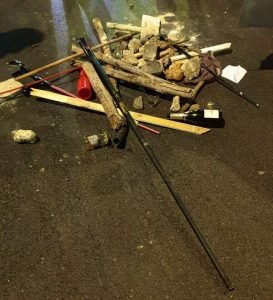 وذكر بلاغ للمديرية العامة للأمن الوطني أنه تم توقيف المشتبه فيهم على متن أربع سيارات خاصة، وبحوزتهم 21 شهابا ناريا، وسكين من الحجم الكبير، علاوة على كميات كبيرة من الحجارة والقنينات الزجاجية الفارغة والعصي والأدوات الراضة التي كانوا يحاولون تسريبها إلى داخل الملعب الذي يحتضن المباراة.