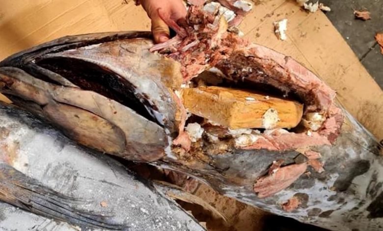 وقد مكنت إجراءات التفتيش من حجز شحنات مخدر الكوكايين ملفوفة بعناية داخل أحشاء سمك التونة، بحيث تتواصل حاليا عملية استخلاص هذه الشحنة من أجل إخضاعها لعملية الوزن النهائي.