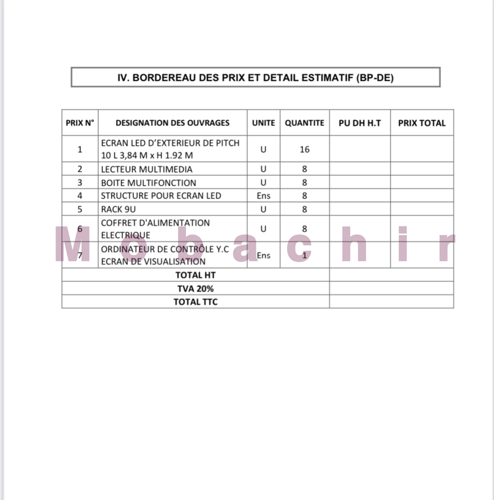 وأعلنت الشركة عن فتح طلب العروض رقم 30/ط.م/2025 المتعلق بإنجاز هذا المشروع، حيث من المرتقب فتح الأظرفة الخاصة به يوم 25 يونيو الجاري على الساعة الحادية عشرة صباحًا، بمقرها الكائن بشارع أحمد التادلي رقم 19 بطنجة. ويغطي المشروع تهيئة تجهيزات بصرية متطورة لعرض محتوى ديناميكي، وتبلغ القيمة التقديرية للأشغال نحو 4.274.640,00 درهم شاملة الرسوم، فيما حُدد مبلغ الضمان المؤقت في 85.000 درهم.