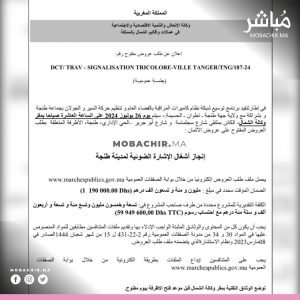 أطلقت وكالة الإنعاش والتنمية الإقتصادية والإجتماعية في عمالة وأقاليم الشمال، صفقة لإنجاز أشغال الإشارة الضوئية لمدينة طنجة، وقد أفصحت الوكالة في منشور طلب العروض عن الكلفة التقديرية للمشروع والمحددة في 6 ملايير سنتيم، وهو مبلغ “فَلكي” جد مبالغ فيه، يقول مصدر مختص في مجال الإنارة والتشوير الضوئي .