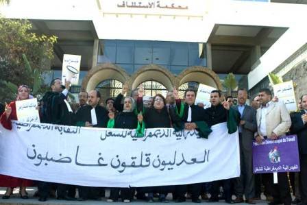 وأعلنت النقابة الديمقراطية للعدل بعد أن “وضعت هذا الحدث في سياقه المرحلي مع ما سبقه وواكبه من رفع لمطالب مادية تخص القضاة دون باقي مكونات جهاز العدالة، وأساسا هيئة كتابة الضبط باسم استقلالية السلطة القضائية وتحصين جهاز القضاء”، رفضها لـ”تركيبة الهيئة العليا الاقصائية، والتي تشكل تركيبتها تغييبا مقصودا لأكثر من 70 بالمائة من الموارد البشرية لجهاز العدالة بالمغرب”، وتساءلت “كيف تضم عضوية الهيئة رئيسي قطبي الشؤون الإدارية والشؤون المالية بالمجلس الأعلى للسلطة القضائية ويغيب عنها مدير الموارد البشرية ومدير الميزانية والمراقبة اللذان يتوليان تدبير لأكثر من 17 ألف موظف وكذا جزء مهم من الشأن المالي والإداري للقضاة لا لشيء سوى لأنهما من أطر هيئة كتابة الضبط”.