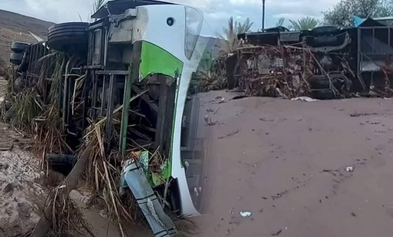 مصرع شخصين وفقدان 14 آخرين إثر انجراف حافلة بفعل السيول بطاطا